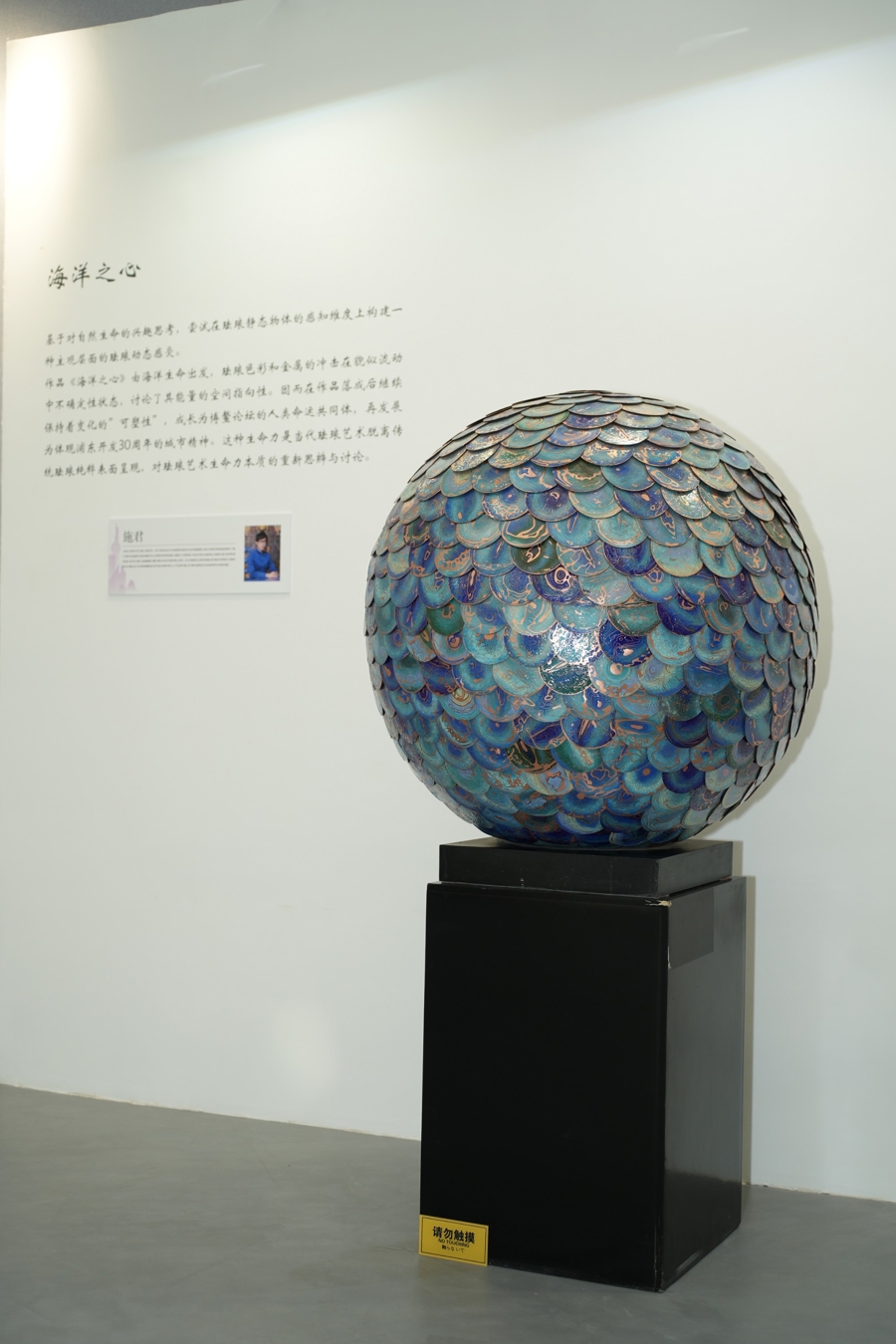上海市工艺美术大师施君的《海洋之心》以海洋生命为灵感,将金属与珐琅色彩的碰撞凝固为流动的瞬间,呈现了珐琅艺术脱离传统装饰范式后新的表现张力和当代蜕变。
