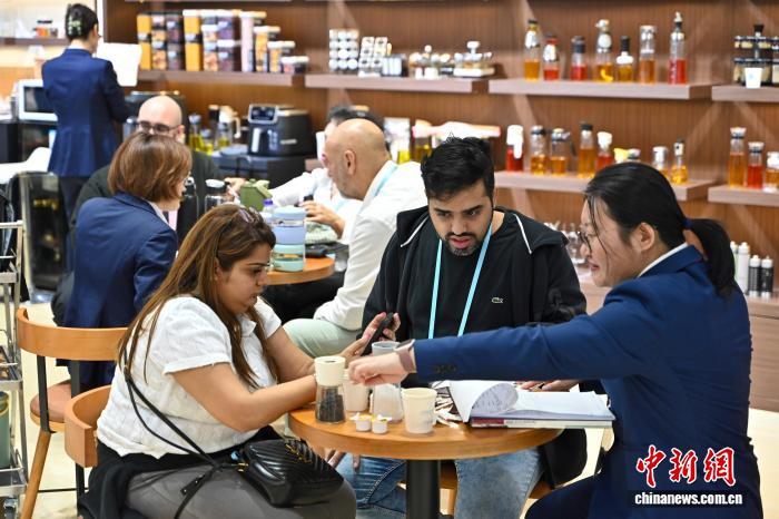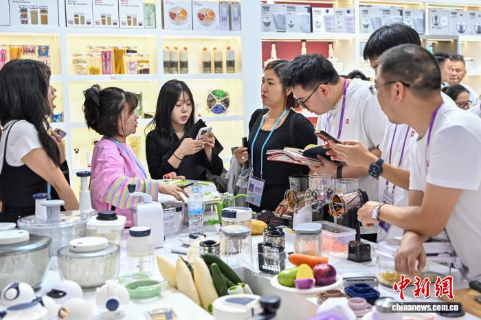 10月23日,第138届中国进出口商品交易会(广交会)第二期在广州开幕。据广交会组委会统计,截至10月23日17时,第138届广交会境外采购商到会人数超19万人。图为境外采购商在餐厨用具展区挑选产品。中新社记者 陈骥旻 摄