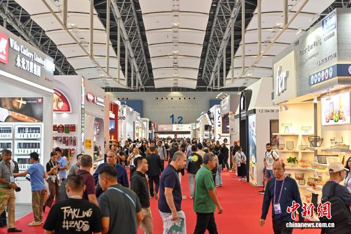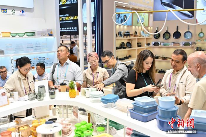 10月23日,第138届中国进出口商品交易会(广交会)第二期在广州开幕。据广交会组委会统计,截至10月23日17时,第138届广交会境外采购商到会人数超19万人。图为餐厨用具展区人气旺。中新社记者 陈骥旻 摄